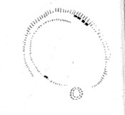 156637 819933 Druim an Fhurain 7 (MW153/6) AMC906: The structure was visited by A Welti and A MacInnes in 2009 as part of research for a dissertation on hut circles in Wester Ross. This was part of a degree course overseen by Aberdeen University. The Druim an Fhurain hut circles mostly lie along 70m to 90m contours on natural terraces overlooking Loch Slapin, along the very steep eastern hill slopes of Druim an Fhurain. The structures are roughly 200 m apart. This circular stone structure is 153/6 in JMT archaeological survey 1998 (M Wildgoose). This circular structure is very degraded (see sketch). It consists of a low earth bank, dug into the slope, with a short length of wall facing on the NE side. The inner diameter could not be measured, the outer diameter averages 13m. The S side of the circle is overlain by a single cell shieling. No entrance is discernable. This structure may be associated with other hut circles, AMC908 (see MHG), 910 (see MHG), 911 (see MHG), 909 (see MHG), sited on similar elevations at distances between 200m and 800m. <3> <4>