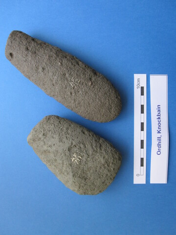 The NMS catalogue lists two weathered stone axehead with imperfect butts from Ordhil, Knockbain It is one of the objects collected by Dr William McLean and part of the collections donated to the NMS after his death in 1931. Listed under Acc. Nos. AF 711 and AF 712. <1>